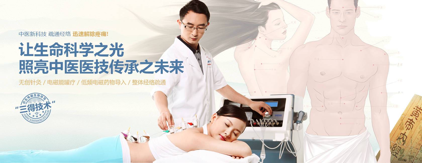 三得技術(shù)經(jīng)過十余年研發(fā)及上萬例臨床驗(yàn)證,被證實(shí)為一種安全、舒適、高效解除疼痛的物理治療新技術(shù),它突破了中醫(yī)醫(yī)技“操作簡易化”和“數(shù)據(jù)量化”瓶頸,符合未來中西醫(yī)結(jié)合的大趨勢,也必將為人類健康帶來福音。
